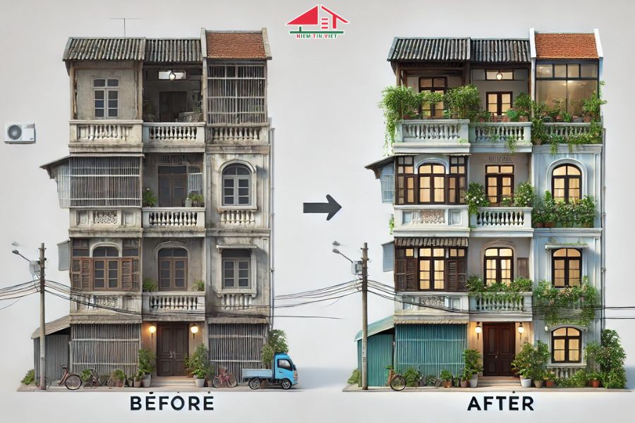 • Tình trạng xuống cấp của công trình: Nếu nhà quá cũ, cần gia cố móng hoặc xử lý kết cấu, chi phí sẽ tăng.