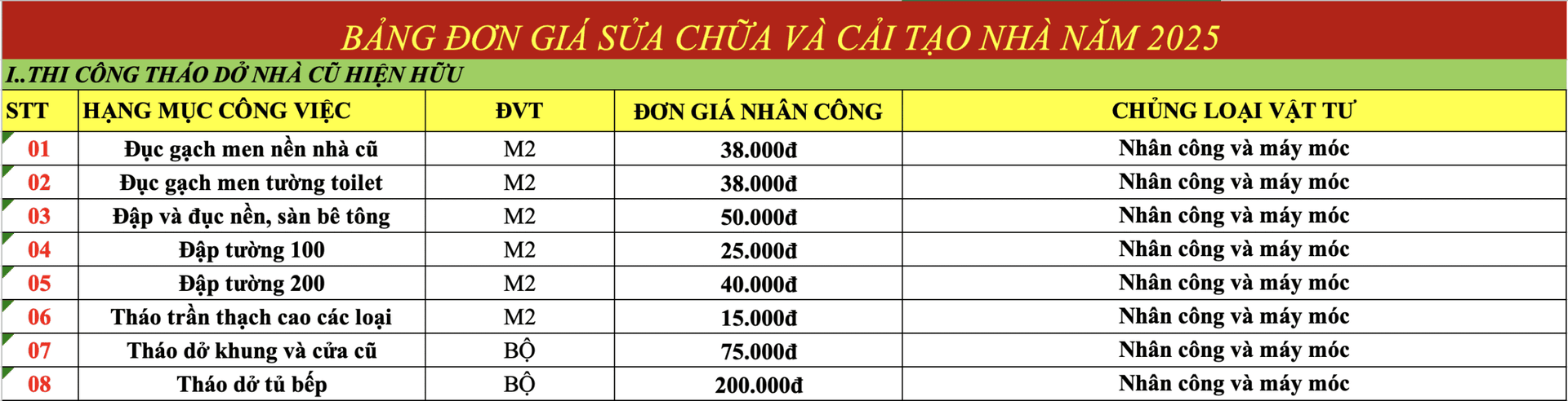 Báo giá sửa chữa nhà trọn gói năm 2025