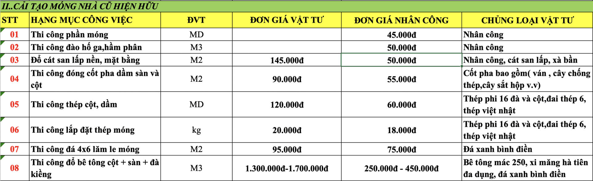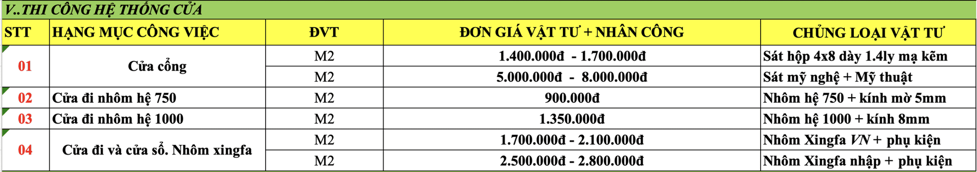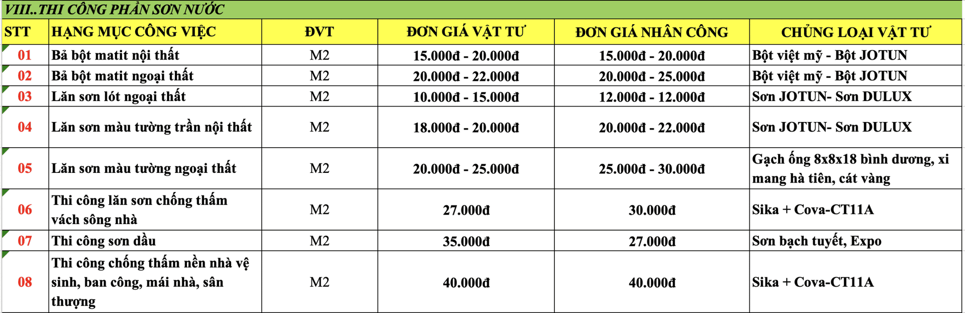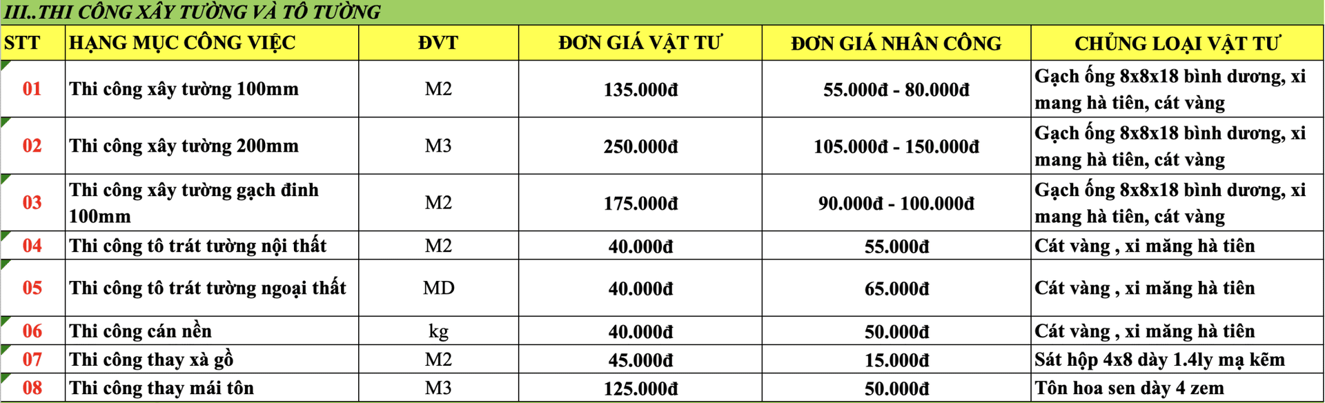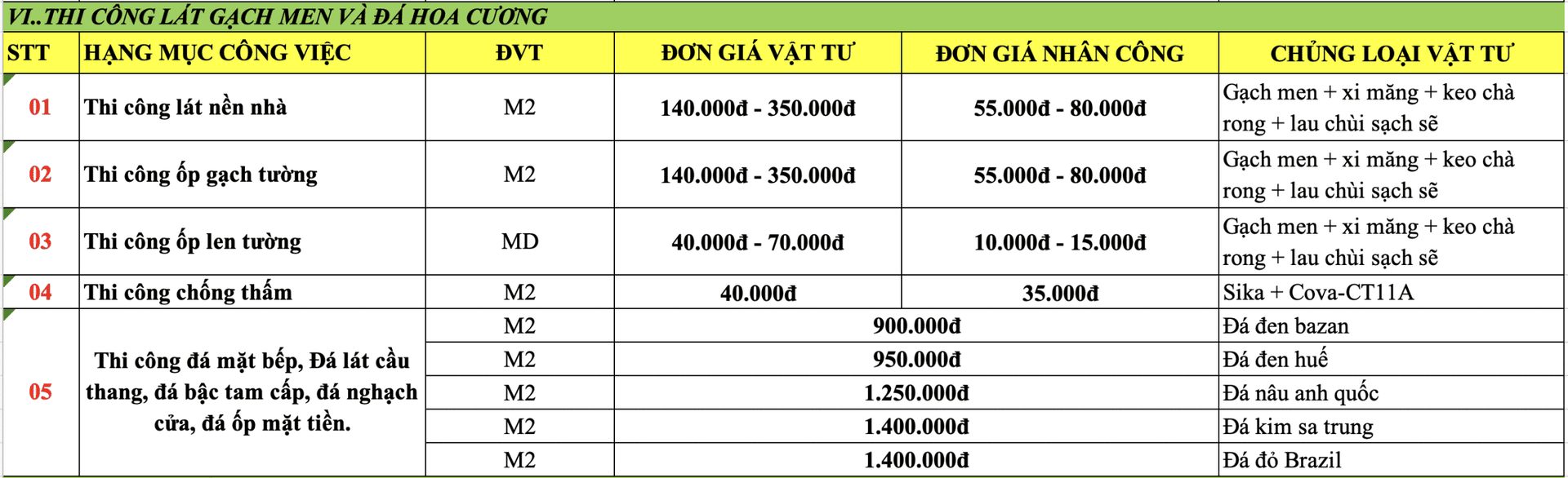 Lưu ý: Báo giá có thể thay đổi tùy thực tế công trình, diện tích, vật tư và yêu cầu riêng của gia chủ.