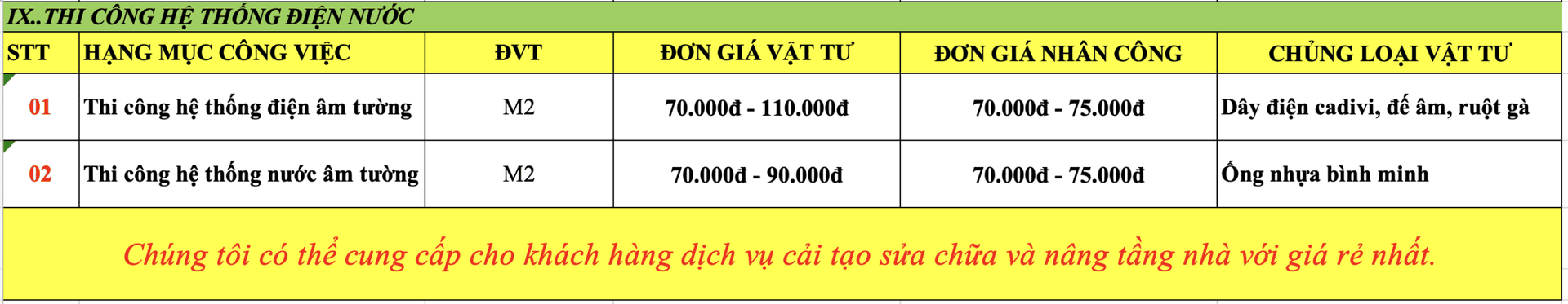 • Hệ thống điện, nước: đi lại đường ống, dây điện âm tường, thay mới thiết bị điện nước.