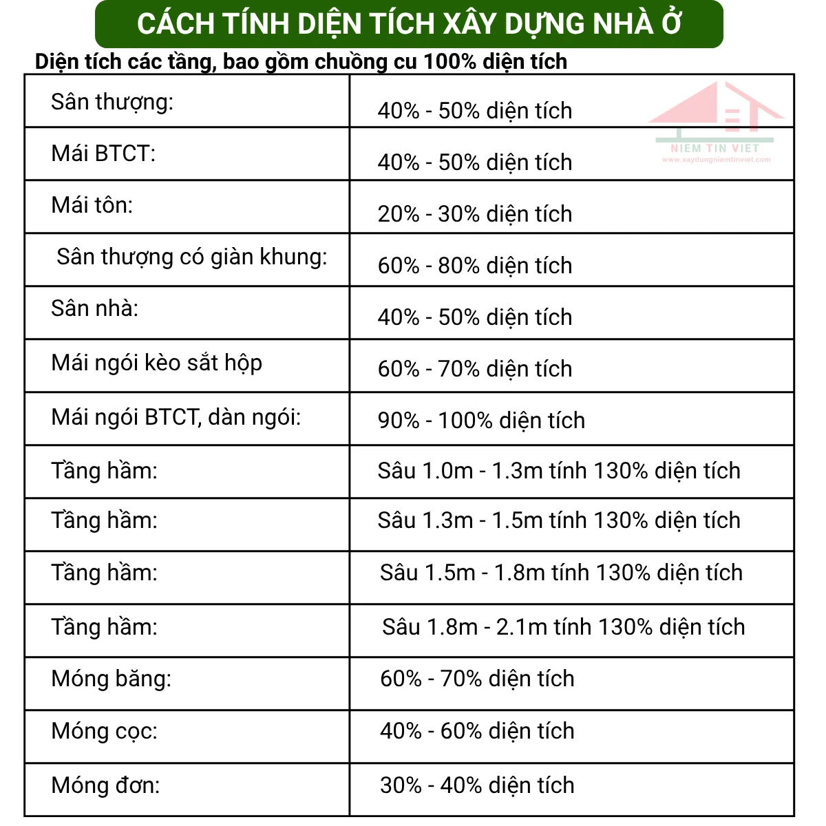 Niềm Tin Việt sẽ hướng dẫn các bạn phương pháp tính diện tích xây dựng khi xây nhà. Đơn vị tính diện tích xây nhà theo mét vuông (m2) sẽ giúp các bạn cân nhắc các phương án thiết kế và xác định được chính xác chi phí xây nhà.