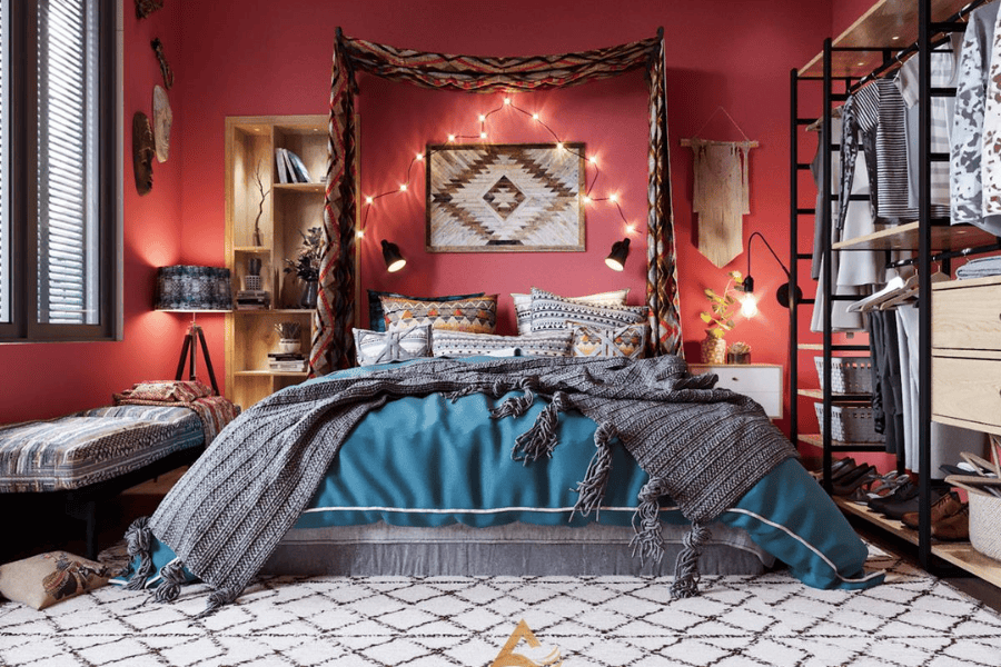 Sử dụng các họa tiết thổ cẩm, nội thất màu sắc rực rỡ, mang lại cảm giác phóng khoáng, tự do.