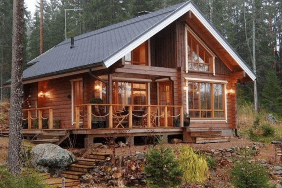 Nhà gỗ mang phong cách Châu Âu, thường tọa lạc ở vùng núi, tạo cảm giác ấm áp, lãng mạn.